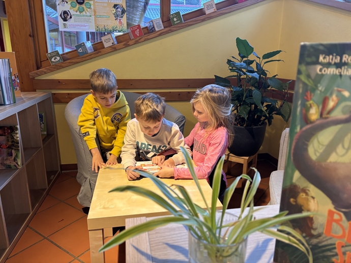Ein Höhepunkt dabei war unser erster Besuch in der neu gestalteten Bücherei. Die Kinder staunten über das vielfältige Angebot und suchten sich ihren ganz persönlichen „Bücherschatz“ aus.
